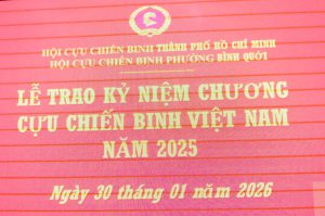 HỘI CCB PHƯỜNG BÌNH QUỚI TỔ CHỨC LỄ TRAO KỶ NIỆM CHƯƠNG CỰU CHIẾN BINH VIỆT NAM CHO HỘI VIÊN. Ngày 30/01/2026. Hội CCB Phường...