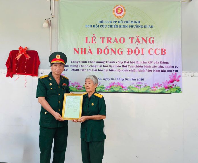 🍀🍀Thiết thực lập thành tích chào mừng thành công Đại hội lần thứ XIV của Đảng; chào mừng thành công Đại hội đại biểu Hội Cựu chiến binh các cấp nhiệm kỳ 2025–2030, tiến tới Đại hội đại biểu Hội Cựu chiến binh Việt Nam lần thứ VIII và mừng Xuân Bính Ngọ 2026, Hội Cựu chiến binh phường đã tổ chức Lễ trao tặng “Nhà Đồng đội Cựu chiến binh” cho hội viên Kiều Thị Ích – hội viên Chi hội CCB khu phố Đông Tác.