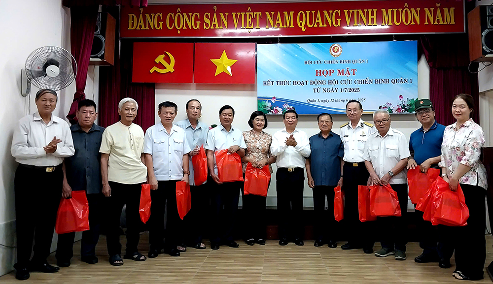 Tối 12/6, Hội Cựu chiến binh Quận 1 tổ chức họp mặt tri ân cán bộ Hội qua các thời kỳ đã có nhiều đóng góp trong công tác hội nhân sự kiện kết thúc hoạt động kể từ ngày 1/7/2025.