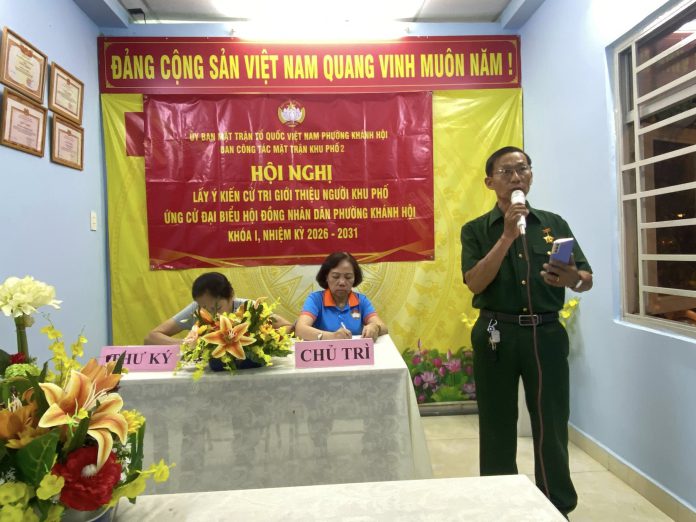 🔹 Thực hiện Thông báo của Ủy ban Mặt trận phường về việc phân bổ số lượng, thành phần, cơ cấu người được giới thiệu ứng cử đại biểu Hội đồng nhân dân phường Khánh Hội khóa I, nhiệm kỳ 2026-2031; được sự hướng dẫn của Ủy ban Mặt trận Tổ quốc Việt Nam phường từ ngày 27/12/2025 đến 10/01/2026, các khu phố được phân bổ số lượng đã tổ chức Hội nghị lấy ý kiến cử tri giới thiệu người khu phố ứng cử đại biểu Hội đồng nhân dân phường theo đúng trình tự, thủ tục theo luật định.